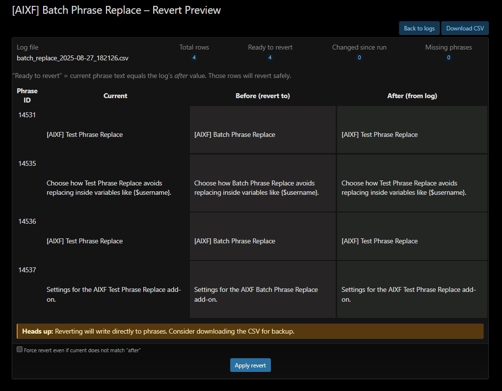 AIXF Batch Phrase Replace - Admin Tool to batch-replace phrases.