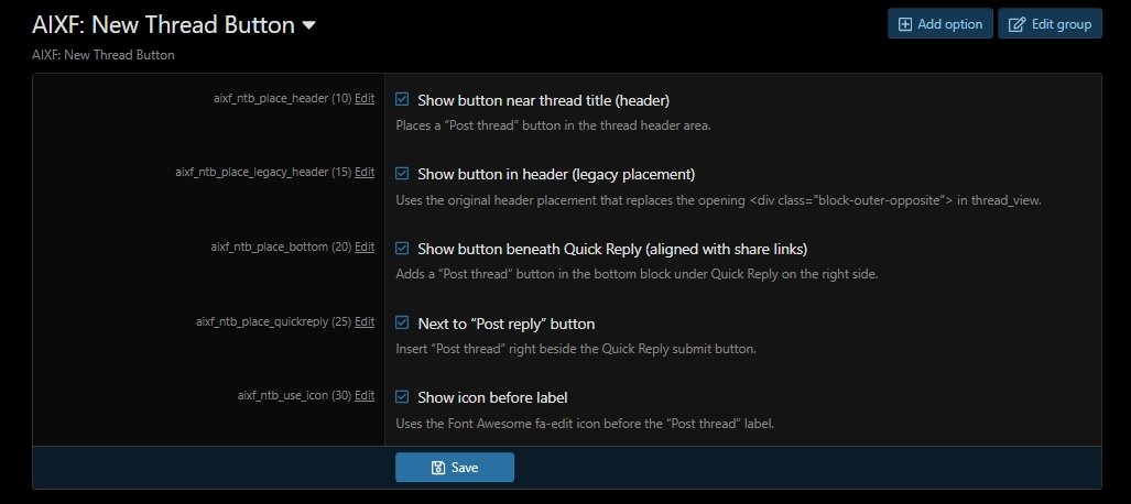 AIXF - New Thread Button in Thread View - Adds a 'New thread' button to the thread_view header if the visitor can post in that forum.